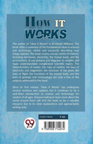 The author of "How it Works" is Archibald Williams. The book offers a summary of the fundamental ideas in science and technology, clearly and succinctly describing how things operate. The book covers a broad variety of themes, including mechanics, electricity, the human body, and the environment. It use pictures and diagrams to simplify and make understandable complicated scientific topics. The characteristics of matter, the rules of motion, the laws of electricity and magnetism, the structure of the atom, the laws of flight, the functions of the human body, and the laws of geology and meteorology are only a few of the subjects addressed in the book. Since its first release, "How it Works" has undergone several revisions and updates, but it continues to be a well-liked introduction to science and technology for readers of all ages. Anyone looking to learn more about the world around them will find the book to be a valuable resource due to its clear explanations and approachable writing style.