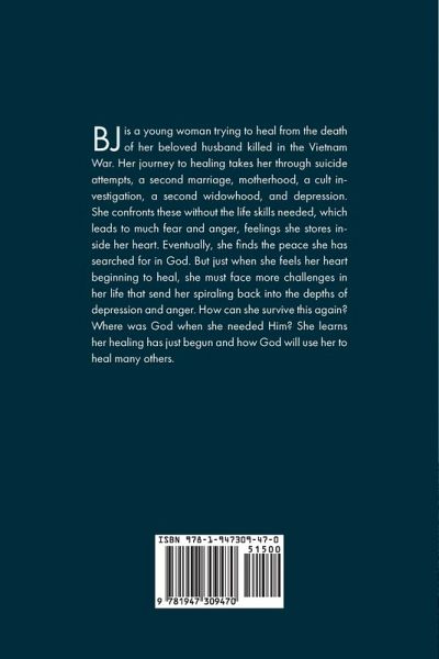 BJ is a young woman trying to heal from the death of her beloved husband killed in the Vietnam War. Her journey to healing takes her through suicide attempts, a second marriage, motherhood, a cult investigation, a second widowhood, and depression. She confronts these without the life skills needed, which leads to much fear and anger, feelings she stores inside her heart. Eventually, she finds the peace she has searched for in God. But just when she feels her heart beginning to heal, she must face more challenges in her life that send her spiraling back into the depths of depression and anger. How can she survive this again? Where was God when she needed Him? She learns her healing has just begun and how God will use her to heal many others.