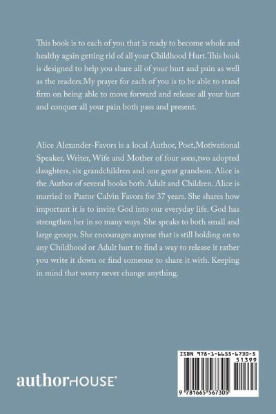 This book is to each of you that is ready to become whole and healthy again getting rid of all your Childhood Hurt. This book is designed to help you share all of your hurt and pain as well as the readers.My prayer for each of you is to be able to stand firm on being able to move forward and release all your hurt and conquer all your pain both pass and present.