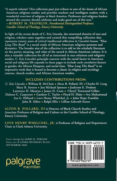 In light of the recent death of C. Eric Lincoln, the renowned theorist of race and religion, scholars came together and created this compelling collection that represents twenty years of critical intellectual reflection in Lincoln's honor. "How Long this Road" is a social study of African American religious patterns and dynamics. C. Eric Lincoln's principle concern with the racial factor in American social and religious life expands in these pages to include such correlative factors as gender, the African Diaspora, and social class. "How Long this Road" is an impressive work that is bound to become a classic in religion and sociology courses, church studies and African American studies.Hinweis: Dieser Artikel kann nur an eine deutsche Lieferadresse ausgeliefert werden.