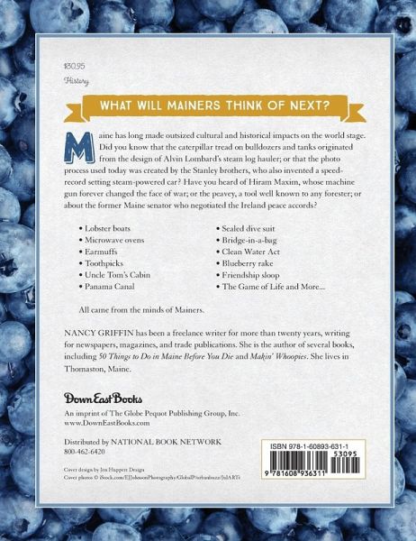 As Down East Books celebrates 50 years of great book publishing, it seems appropriate to reflect upon the contributions Maine has made that have had significant cultural and historical impacts on both the United States and the World. Did you know that the caterpillar tread, common on bulldozers and tanks, originated from the design of Lombard’s steam log hauler; or that the dry plate photographic process was created by the Stanley brothers, who also invented a speed-record setting steam powered car and whose sister, Chansonetta, was a well-known photographer in her own right? Maxim’s machine gun forever changed the practice of warfare. The humble peavey is a simple tool well-known to any forester or lumberjack. The ubiquitous lobster boat, the microwave oven, earmuffs, and Monopoly—all came from the minds of Mainers. This book is a celebration of Maine’s creative ingenuity—from the very large, such as Portland Head Light and the Penobscot Narrows Bridge to the very small, such as the toothpick and the Bean boot.