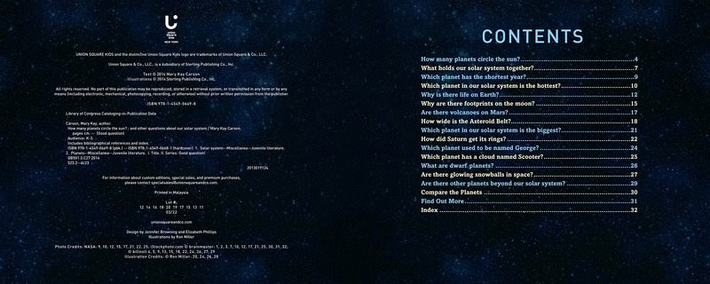 Why is there life on earth? How did Saturn get its rings? Which planet is biggest, which one's hottest and which has a cloud named Scooter? This book takes you on a trip into outer space to learn about the asteroid belt, Martian volcanoes, dwarf planets and other facts about our universe.