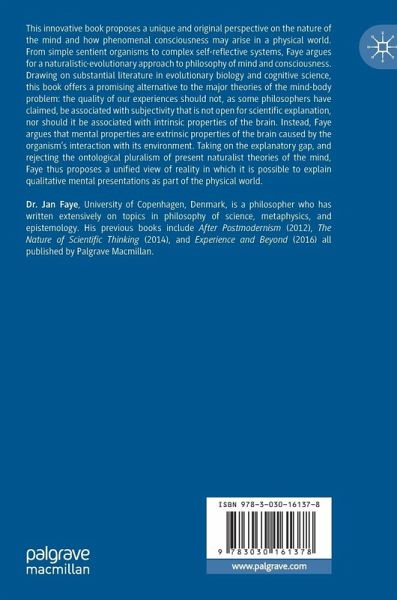 This innovative book proposes a unique and original perspective on the nature of the mind and how phenomenal consciousness may arise in a physical world. From simple sentient organisms to complex self-reflective systems, Faye argues for a naturalistic-evolutionary approach to philosophy of mind and consciousness. Drawing on substantial literature in evolutionary biology and cognitive science, this book offers a promising alternative to the major theories of the mind-body problem: the quality of our experiences should not, as some philosophers have claimed, be associated with subjectivity that is not open for scientific explanation, nor should it be associated with intrinsic properties of the brain. Instead, Faye argues that mental properties are extrinsic properties of the brain caused by the organism's interaction with its environment. Taking on the explanatory gap, and rejecting the ontological pluralism of present naturalist theories of the mind, Faye thus proposes aunified view of reality in which it is possible to explain qualitative mental presentations as part of the physical world.