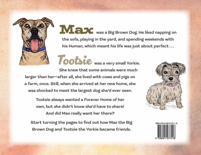 Max was a Big Brown Dog. He liked napping on the sofa, playing in the yard, and spending weekends with his Human, which meant his life was just about perfect . . . Tootsie was a very small Yorkie. She knew that some animals were much larger than her-after all, she lived with cows and pigs on a farm, once. Still, when she arrived at her new home, she was shocked to meet the largest dog she'd ever seen. Tootsie always wanted a Forever Home of her own, but she didn't know she'd have to share! And did Max really want her there? Start turning the pages to find out how Max the Big Brown Dog and Tootsie the Yorkie became friends.