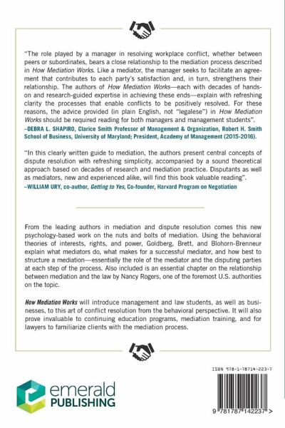How Mediation Works will introduce management and law students as well as businesses to this art of conflict resolution from the behavioral perspective, while also providing a valuable resource to continuing education programs, mediation training, and lawyers to familiarize clients with the mediation process.