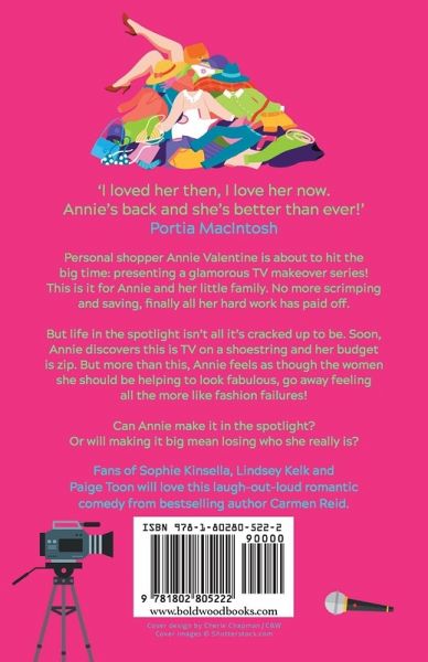 'I loved her then, I love her now. Annie's back and she's better than ever! Fun, feel good and feisty - Annie Valentine is the woman you want to share a cocktail with!' Portia MacIntosh Her passion is fashion... but she's on a budget! Personal shopper Annie Valentine is about to hit the big time: presenting a glamorous TV makeover series! This is it for Annie and her little family. No more scrimping and saving, finally all her hard work has paid off. But life in the spotlight isn't all it's cracked up to be. Soon, Annie discovers this is TV on a shoestring and her budget is zip. But more than this, Annie feels as though the women she should be helping to look fabulous, go away feeling all the more like fashion failures! Can Annie make it in the spotlight? Or will making it big mean losing who she really is? Fans of Sophie Kinsella, Lindsey Kelk and Paige Toon will love this laugh-out-loud romantic comedy from bestselling author Carmen Reid. What readers are saying! "If you love shopping as much as you love a great read, try this. Wonderful." Bestselling author, Katie Fforde "Annie Valentine is a wonderful character - I want her to burst into my life and sort out my wardrobe for me!" Bestselling author, Jill Mansell "You will enjoy getting to know Annie Valentine; laughing with her and crying with her. You may even fall in love with her . . . I have! A fantastic read!"⭐ ⭐ ⭐ ⭐ ⭐ Reader review "Fantastic read, couldn't put it down" ⭐ ⭐ ⭐ ⭐ ⭐ Reader review "Can't wait to read the next one!" ⭐ ⭐ ⭐ ⭐ ⭐ Reader review