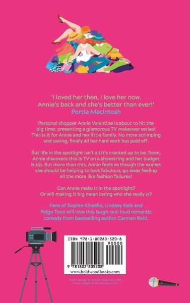 'I loved her then, I love her now. Annie's back and she's better than ever! Fun, feel good and feisty - Annie Valentine is the woman you want to share a cocktail with!' Portia MacIntosh Her passion is fashion... but she's on a budget! Personal shopper Annie Valentine is about to hit the big time: presenting a glamorous TV makeover series! This is it for Annie and her little family. No more scrimping and saving, finally all her hard work has paid off. But life in the spotlight isn't all it's cracked up to be. Soon, Annie discovers this is TV on a shoestring and her budget is zip. But more than this, Annie feels as though the women she should be helping to look fabulous, go away feeling all the more like fashion failures! Can Annie make it in the spotlight? Or will making it big mean losing who she really is? Fans of Sophie Kinsella, Lindsey Kelk and Paige Toon will love this laugh-out-loud romantic comedy from bestselling author Carmen Reid. What readers are saying! "If you love shopping as much as you love a great read, try this. Wonderful." Bestselling author, Katie Fforde "Annie Valentine is a wonderful character - I want her to burst into my life and sort out my wardrobe for me!" Bestselling author, Jill Mansell "You will enjoy getting to know Annie Valentine; laughing with her and crying with her. You may even fall in love with her . . . I have! A fantastic read!"⭐ ⭐ ⭐ ⭐ ⭐ Reader review "Fantastic read, couldn't put it down" ⭐ ⭐ ⭐ ⭐ ⭐ Reader review "Can't wait to read the next one!" ⭐ ⭐ ⭐ ⭐ ⭐ Reader review