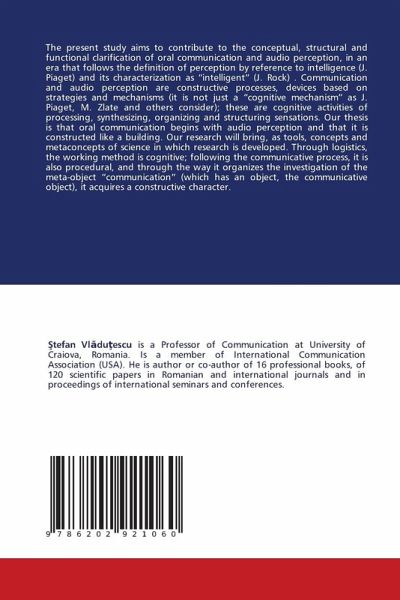 The present study aims to contribute to the conceptual, structural and functional clarification of oral communication and audio perception, in an era that follows the definition of perception by reference to intelligence (J. Piaget) and its characterization as "intelligent" (J. Rock) . Communication and audio perception are constructive processes, devices based on strategies and mechanisms (it is not just a "cognitive mechanism" as J. Piaget, M. Zlate and others consider); these are cognitive activities of processing, synthesizing, organizing and structuring sensations. Our thesis is that oral communication begins with audio perception and that it is constructed like a building. Our research will bring, as tools, concepts and metaconcepts of science in which research is developed. Through logistics, the working method is cognitive; following the communicative process, it is also procedural, and through the way it organizes the investigation of the meta-object "communication" (which has an object, the communicative object), it acquires a constructive character.