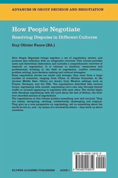 How People Negotiate brings together a set of negotiation stories, accompanied by an integrative overview. This volume provides cases and theoretical elaboration and includes a comprehensive overview of research on negotiation. Some negotiation stories are exotic and strange: they come from a large number of countries, ranging from China, to African Countries, to the Ancient Middle East. Others are drawn from Western settings such as France, Germany, and USA. The negotiations described take various forms: negotiating with oneself, negotiating one's own way through bicycle traffic or animals appearing to negotiate with each other. The stories begin with Abraham negotiating with the Lord about the fate of Sodom, the first-ever recorded account of negotiations.