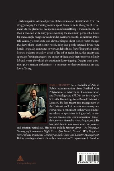 This book paints a detailed picture of the commercial pilot lifestyle, from the struggle to pay for training to time spent down route to thoughts of retirement. Once a glamorous occupation, commercial flying is today more of a job than a vocation with many pilots working the maximum permissible hours for increasingly meagre rewards under evermore stressful conditions. Pilots talk candidly about acute and chronic fatigue, short-notice roster changes that leave them insufficiently rested, noisy and poorly serviced down-route hotels, long daily commutes to work, indebtedness, fear of losing their pilot's licence, industry volatility, dread of lay-off or redundancy, the quality and agendas of airline managers, the impact of these and other stressors on family life and where they think the aviation industry is going. Despite these privations pilots remain enthusiastic - a testament to their professionalism and love of flying.