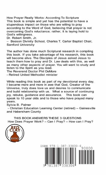 THIS BOOK ANSWERS THESE 3 QUESTIONS How Does Prayer Work? - Can I Pray? - How can I Pray? This book will add to any daily devotional for both those new to praying and seasoned prayer warriors as well. Scripture references for various subjects most often prayed about are included making this book even more of a must have.
