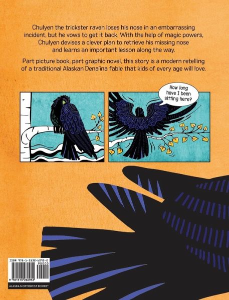2019 Association for Library Service to Children (ALSC) Notable and American Indians in Children's Literature (AICL) 2018 Best Book. Chulyen the trickster raven loses his nose one day, but he vows to get it back. Luckily he has some special powers to help him! How Raven Got His Crooked Nose is a modern retelling of a traditional Native American fable. Part picture book and part graphic novel, this beautifully illustrated story teaches an important lesson to children through Dena'ina mythology and includes a glossary of Dena'ina words to learn.
