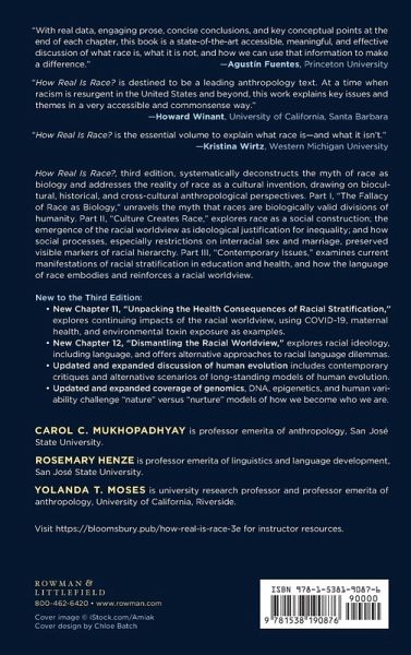 Biologically speaking, there is no such thing as race. Yet this seems to contradict the experiences of people in the United States and other countries where racial classification is used daily, by individuals and institutions. Race still matters, whether in wealth accumulation, educational achievement, health, the legal system, or in personal safety. How can race not be real when we experience its effects every day? Mukhopadhyay, Henze, and Moses systematically deconstruct the myth of race as biology and address the reality of race as a cultural invention, drawing on biocultural, historical, and cross-cultural anthropological perspectives. In doing so, they shed light on the intricate interplay among race, biology, culture, power, and stratification. Part I, "The Fallacy of Race as Biology," unravels the myth that races are biologically valid divisions of humanity. Part II, "Culture Creates Race," explores race as a social construction; the emergence ofthe racial worldview as ideological justification for inequality; and how social processes, especially restrictions on interracial sex and marriage, maintained visible markers of racial hierarchy. Part III, "Contemporary Issues," examines current manifestations of racial stratification including the educational achievement gap, health disparities, and how the language of race embodies and reinforces a racial worldview. New to this Edition: · New Chapter 11, "Unpacking the Health Consequences of Racial Stratification," explores the continuing impacts of the racial worldview on race-related health disparities, using the COVID-19 pandemic, maternal health and "weathering," and exposure to environmental toxins as case studies · New Chapter 12, "Dismantling the Racial World View," explores racial ideology, including language, and offers alternative approaches to racial language dilemmas. · Updated and expanded discussion of human evolution includes contemporary critiques and alternative scenarios of long-standing models of human evolution and emphasizes our collective African roots. · Updated and expanded coverage of genomics, DNA, epigenetic processes, and the enormous human variability at the molecular level, all challenging "nature" versus "nurture" models of how we become who we are. · New data on immigrants, languages, religions, socio-economic and regional racial-ethnic patterns, interracial marriage and other trends explores contemporary diversity in the United States and suggests traditional racial ideology and categories are becoming obsolete.