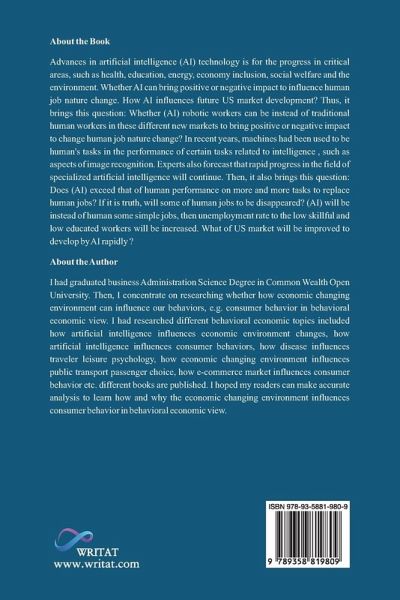 Advances in artificial intelligence (AI) technology is for the progress in critical areas, such as health, education, energy, economy inclusion, social welfare and the environment. Whether AI can bring positive or negative impact to influence human job nature change. How AI influences future US market development? Thus, it brings this question: Whether (AI) robotic workers can be instead of traditional human workers in these different new markets to bring positive or negative impact to change human job nature change? In recent years, machines had been used to be human's tasks in the performance of certain tasks related to intelligence , such as aspects of image recognition. Experts also forecast that rapid progress in the field of specialized artificial intelligence will continue. Then, it also brings this question: Does (AI) exceed that of human performance on more and more tasks to replace human jobs? If it is truth, will some of human jobs to be disappeared? (AI) will be instead of human some simple jobs, then unemployment rate to the low skillful and low educated workers will be increased. What of US market will be improved to develop by AI rapidly ?