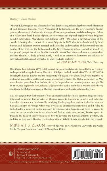 How Russia Lost Bulgaria examines the very rapid disintegration in Russo–Bulgarian relations following Bulgaria’s independence—in less than a decade, the two went from close allies to bitter foes, against a backdrop of coups, wars, and crises.