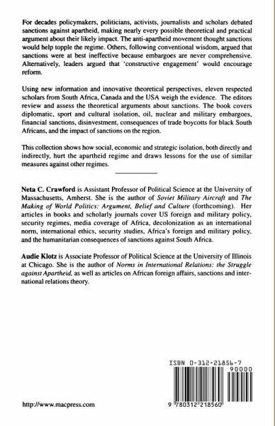 How Sanctions Work surveys theories of international sanctions and offers detailed analyses of the effect of sanctions on apartheid South Africa. Chapters by respected international experts cover cultural isolation, oil and military embargoes, trade boycotts, financial sanctions and divestment, consequences for black South Africans, and regional effects. The book shows how sanctions both directly and indirectly hurt the apartheid regime while in some cases offering succour to the anti-apartheid movement.