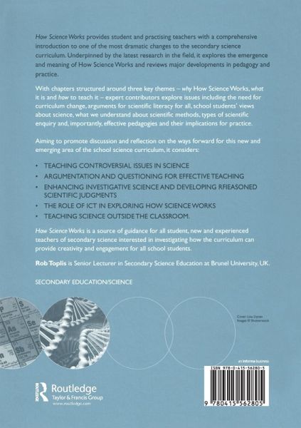 How Science Works provides student and practising teachers with a comprehensive introduction to one of the most dramatic changes to the secondary science curriculum.¿ Underpinned by the latest research in the field, it explores the emergence and meaning of How Science Works and reviews major developments in pedagogy and practice. With chapters structured around three key themes - why How Science Works, what it is and how to teach it - expert contributors explore issues including the need for curriculum change, arguments for scientific literacy for all, school students' views about science, what we understand about scientific methods, types of scientific enquiry, and, importantly, effective pedagogies and their implications for practice. Aiming to promote discussion and reflection on the ways forward for this new and emerging area of the school science curriculum, it considers: teaching controversial issues in science argumentation and questioning for effective teaching enhancing investigative science and developing reasoned scientific judgments the role of ICT in exploring How Science Works teaching science outside the classroom. How Science Works is a source of guidance for all student, new and experienced teachers of secondary science, interested in investigating how the curriculum can provide creativity and engagement for all school students.