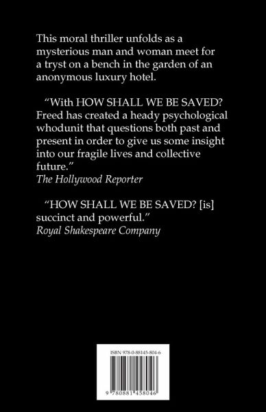 This moral thriller unfolds as a mysterious man and woman meet for a tryst on a bench in the garden of an anonymous luxury hotel. "With HOW SHALL WE BE SAVED? Freed has created a heady psychological whodunit that questions both past and present in order to give us some insight into our fragile lives and collective future." The Hollywood Reporter "HOW SHALL WE BE SAVED? [is] succinct and powerful." Royal Shakespeare Company
