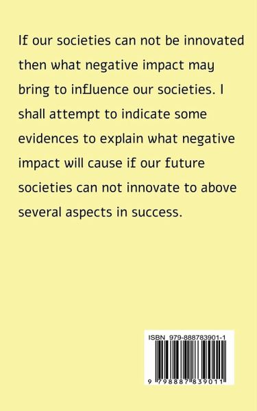 I shall explain why do our societies need to innovate? Product innovation, medical technology innovation, space technology innovation, transport service innovation, educational innovation. I shall concentrate on discuss these several aspects. If our societies can not be innovated on above several aspect, then what negative impact may bring to influence our societies. I shall attempt to indicate some evidences to explain what negative impact will cause if our future societies can not innovate to above several aspects in success. I hope my readers can make personal judgement whether my analysis and opinion is right or wrong as well as you can discuss your opinion to argue my view point after you read this book. How social change influences human behavioral change ? Why human behavior may be influenced by social change? Our individual behavior whether can be influenced to bring negative or positive attitude by social change? I shall attempt to indicate cases to explain whether our individual behavior can be influenced to changed by social environment change. Readers can have more understand how and why social change may influence our behavior in possible.