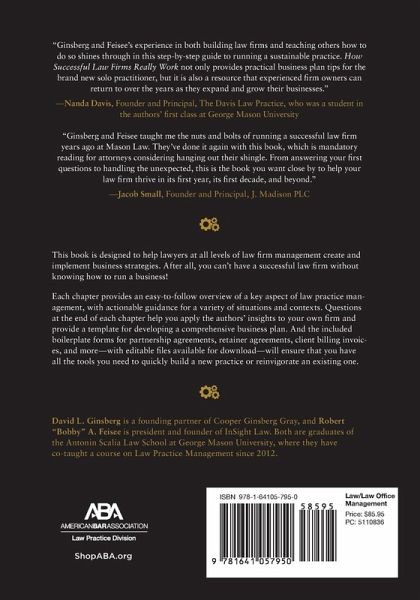 This book is designed to help lawyers at all levels of law firm management create and implement business strategies. After all, you can't have a successful law firm without knowing how to run a business! Each chapter provides an easy-to-follow overview of a key aspect of law practice management, with actionable guidance for a variety of situations and contexts. Questions at the end of each chapter help you apply the authors' insights to your own firm and provide a template for developing a comprehensive business plan. The included boilerplate forms for partnership agreements, retainer agreements, client billing invoices, and more--with editable files available for download--will ensure that you have all the tools you need to quickly build a new practice or reinvigorate an existing one.