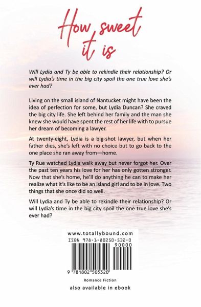 Will Lydia and Ty be able to rekindle their relationship? Or will Lydia's time in the big city spoil the one true love she's ever had? Living on the small island of Nantucket might have been the idea of perfection for some, but Lydia Duncan? She craved the big city life. She left behind her family and the man she knew she would have spent the rest of her life with to pursue her dream of becoming a lawyer. At twenty-eight, Lydia is a big-shot lawyer, but when her father dies, she's left with no choice but to go back to the one place she ran away from-home. Ty Rue watched Lydia walk away but…mehr