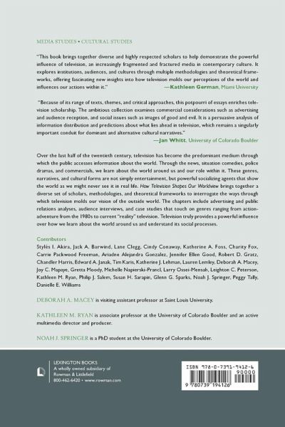 Over the last half of the twentieth century, television has become the predominant medium through which the public accesses information about the world. Through the news, situation comedies, police dramas, and commercials, we learn about the world around us, and our role within it. These genres, narratives, and cultural forms are not simply entertainment, but powerful socializing agents that show the world as we might never see it in real life. How Television Shapes Our Worldview brings together a diverse set of scholars, methodologies, and theoretical frameworks to interrogate the ways through which television molds our vision of the outside world. The essays include advertising and public relations analyses, audience interviews, and case studies that touch on genres ranging from science fiction in the 1970s to current "reality" television. Television truly provides a powerful influence over how we learn about the world around us and understand its social processes.