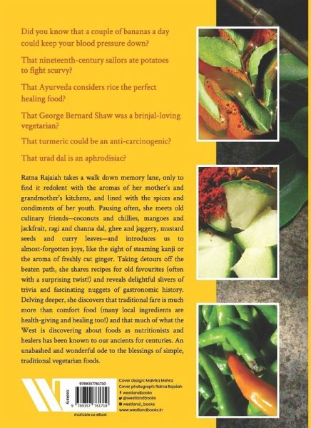 About the Book A BOOK ABOUT THE HIDDEN BENEFITS OF INGREDIENTS COMMONLY FOUND IN MOST INDIAN KITCHENS. Did you know that a couple of bananas a day can lower your blood pressure? That nineteenth century sailors used to eat potatoes to fight scurvy? That Ayurveda considers rice the perfect healing food? That George Bernard Shaw was a brinjal-loving vegetarian? That turmeric could be anti-carcinogenic? That urad dal is an aphrodisiac? Ratna Rajaiah takes a walk down memory lane, only to find it redolent with the aromas of her mother's and grandmother's kitchens, and lined with the spices and condiments of her youth. Pausing often, she meets old culinary friends - coconuts and chillies, mangoes and jackfruit, ragi and channa dal, ghee and jaggery, mustard seeds and curry leaves - and introduces us to almost-forgotten joys, like the sight of steaming kanji or the scent of freshly cut ginger. Taking detours, she shares recipes for old favourites (often with a surprising twist!) and reveals delightful slivers of trivia and fascinating nuggets of gastronomic history. Delving deep, she discovers that traditional fare is much more than comfort food (many local ingredients are health-giving and healing too!) and that much of what the West is discovering about herbs and spices has been known to our ancestors for centuries. An unabashed and wonderful ode to the blessings of simple, traditional vegetarian food. About the Author Ratna Rajaiah has worked in advertising, television and journalism. She has written for publications like The Hindu, India Today and Mid-Day. Her column, 'New Age Living', in the New Indian Express was an attempt to revisit ancient wisdoms like Ayurveda, yoga, spirituality and traditional foods, and make them relevant to modern living. The success of that column led to the conception of this book.