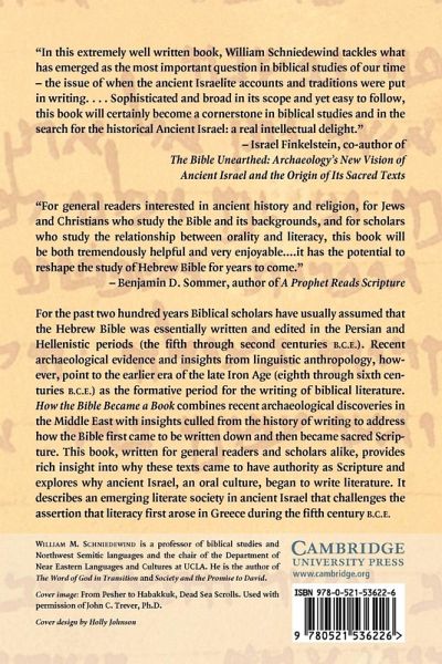 Combines recent archaeological discoveries in the Middle East with insights culled from the history of writing to address how the Bible first came to be written down and then became sacred Scripture. The author relies on anthropologists and archaeologists to date the writing of biblical literature to the late-Iron Age, well before the Persian and Hellenistic periods as was previously assumed, thus challenging the assertion that widespread literacy first arose in Greece during the fifth century BCE.