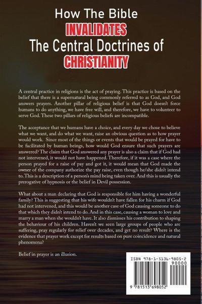 This book provides shocking proof that the Bible does not support the central doctrines of Christianity, that is, it invalidates them. So, the doctrines that the world has taken for granted in the Bible are the result of the words of preachers. For example, we are taught that the serpent in the Garden of Eden was the devil in disguise - the Bible makes no such claim. What about the idea that all humans inherited the sins of Adam and Eve, therefore we are born in sin? The Bible makes no such claim. This idea was popularised in Christian doctrine by Saint Augustine. In the Bible, there is no "devil" involved in the Adam and Eve story! The validity of the Christian doctrine depends on this to justify humanity needing a saviour. Preachers teach about hell and heaven as being real places In the Bible, there is no definitive meaning that can be ascribed to "hell" and "heaven" because their varying usages are unclear, contradictory, and confusing. The Bible teaches discrimination against women - no good parent; much less a God would suggest such discrimination, especially as it led to the church authorising what is known as the witch hunt. In Europe alone, between the years 1500 and 1660, up to 80,000 suspected witches were put to death. Around 80 percent of them were women thought to be in cahoots with the Devil and filled with lust. This is a small fraction of what's in this book, and it's for those who are searching for the truth. This is about exposing a truly mythological story. Most people who say they believe in the Bible have not read it. For those of us who want to know the truth about Christianity and religions in general, this book is a game changer.