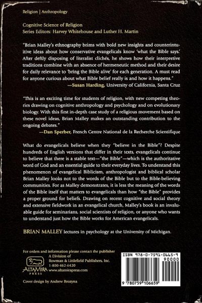 What do evangelicals believe when they 'believe in the Bible'? Despite hundreds of English versions that differ in their texts, evangelicals continue to believe that there is a stable text-'the Bible'-which is the authoritative word of God and an essential guide to their everyday lives. To understand this phenomenon of evangelical Biblicism, anthropologist and biblical scholar Brian Malley looks not to the words of the Bible but to the Bible-believing communities. For as Malley demonstrates, it is less the meaning of the words of the Bible itself than how 'the Bible' provides a proper ground for beliefs that matters to evangelicals. Drawing on recent cognitive and social theory and extensive fieldwork in an evangelical church, Malley's book is an invaluable guide for seminarians, social scientists of religion, or for anyone who wants to understand just how the Bible works for American evangelicals.