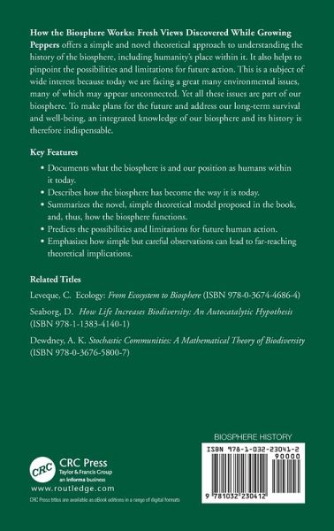 How the Biosphere Works: Fresh Views Discovered While Growing Peppers offers a simple and novel theoretical approach to understanding the history of the biosphere, including humanity's place within it. It also helps to clarify what the possibilities and limitations are for future action. This is a subject of wide interest because today we are facing a great many environmental issues, many of which may appear unconnected. Yet all these issues are part of our biosphere. For making plans for the future and addressing our long-term survival and well-being, an integrated knowledge of our biosphere and its history is therefore indispensable. Key Features Documents what the biosphere is, and what our position as humans within it is today. Describes how the biosphere has become the way it is. Summarizes the novel simple theoretical model proposed in the book, and thus, how the biosphere functions. Predicts what the possibilities and limitations are for future human action Emphasizes how simple but careful observations can lead to far-reaching theoretical implications.