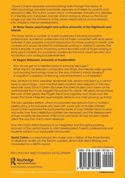 How do we get from helpless baby to knowing teenager? What impact do television, computers and iPads, the internet, video games and evolving technology have on the way children's minds develop? Is cognition a question of learning and environment or of heredity? How we learn to think, perceive, remember, talk, reason and learn is a central topic in psychology - and one¿that sees constant new research. In this very readable book, David Cohen discusses the latest studies and covers all the controversies that have dogged the subject for nearly 150 years. He examines the work of the 'greats' like Piaget, Freud and Vygotsky and shows how the issues that have intrigued psychologists relate to any child growing up today. This book is for everyone who lives with, works with or studies children. David Cohen examines the fundamental issues of how children learn to read and write, of how their intellectual abilities are measured and the development of their morality. He examines child crime and looks at how modern media affect the way the child's mind develops. This fully updated new edition of How the Child's Mind Develops, which incorporates new extracts from a mother's weekly diary, is an integrated and thought-provoking account of the central issues in child development. Parents, professionals and students will find it an invaluable introduction.