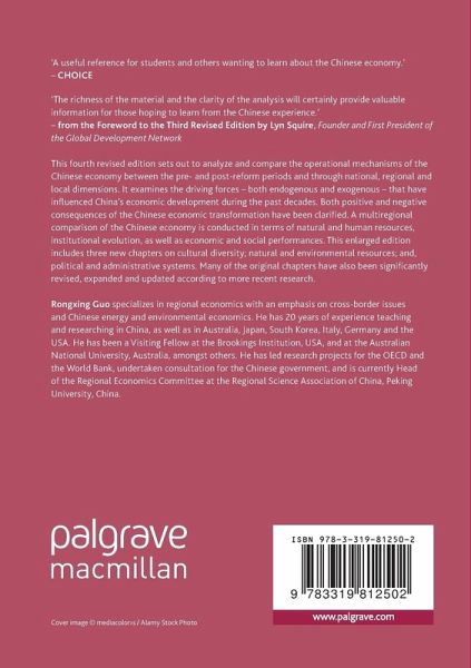 This fourth revised edition s ets out to analyze and compare the operational mechanisms of the Chinese economy between the pre- and post-reform periods and through national, regional and local dimensions. It examines the driving forces - both endogenous and exogenous - that have influenced China's economic development during the past decades. Both positive and negative consequences of the Chinese economic transformation have been clarified. A multiregional comparison of the Chinese economy is conducted in terms of natural and human resources, institutional evolution, as well as economic and social performances. This enlarged edition includes three new chapters on cultural diversity; natural and environmental resources; and, political and administrative systems. Many of the original chapters have also been significantly revised, expanded and updated according to more recent research.