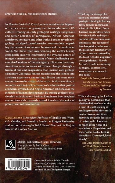 In How the Earth Feels Dana Luciano examines the impacts of the new science of geology on nineteenth-century US culture. Drawing on early geological writings, Indigenous and settler accounts of earthquakes, African American antislavery literature, and other works, Luciano reveals how geology catalyzed transformative conversations regarding the intersections between humans and the nonhuman world. She shows that understanding the earth's history geologically involved confronting the dynamic nature of inorganic matter over vast spans of time, challenging preconceived notions of human agency. Nineteenth-century Americans came to terms with these changes through a fusion of fact and imagination that Luciano calls geological fantasy. Geological fantasy transformed the science into a sensory experience, sponsoring affective and even erotic connections to the matter of the earth. At the same time, it was often used to justify accounts of evolution that posited a modern, civilized, and Anglo-American whiteness as the pinnacle of human development. By tracing geology's relationship with biopower, Luciano illuminates how imagined connections with the earth shaped American dynamics of power, race, and colonization.