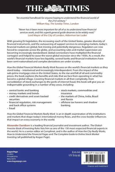 With EU legislation, the increasing reach of the US economy, greater flexibility of financial instruments, and M&A activity across borders, financial markets are becoming ever more international. Overshadowing them all is the spectre of the credit crunch - a global tsunami that stemmed originally from the subprime mortgage crisis in the US but quickly became a global issue, hitting both international money markets and high street lending. How the Global Markets Really Works brings clarity and sense to an often complex international environment, showing how circumstances in one country can have a dramatic effect on the financial environment in many others. The book examines financial markets as they are today - global and, for better or worse, interlinked and inter-dependent. It covers the markets of the US and Europe, as well as other key financial centres around the world, such as Hong Kong and Sydney, but will also offer insight to the unique issues facing emerging markets, including Eastern Europe, China, India and the United Arab Emirates.