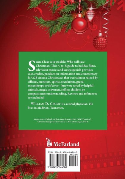 Santa Claus is in trouble! Who will save Christmas? This A-to-Z guide to holiday films, television movies and series specials provides cast, credits, production information and commentary for 228 cinema Christmases that were almost ruined by villains, monsters, spirits, secularism, greed, misanthropy or elf error--but were saved by helpful animals, magic snowmen, selfless children or compassionate understanding. Reviews and references are included.