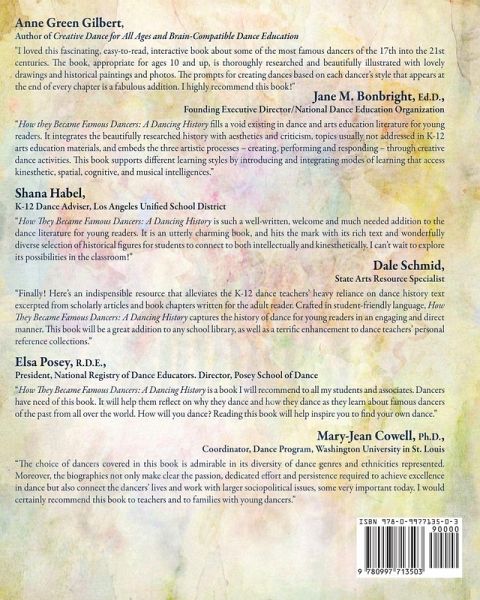 How They Became Famous Dancers: A Dancing History for young readers tells the story of twelve dancers - six women and six men -who became famous, some against all odds. Coming from different parts of the world (France, Hungary, India, Japan, Mexico, Russia, Sweden, Trinidad, and the United States) and displaying a variety of physical sizes, body shapes, and skin colors, their lives spanned the seventeenth into the twenty-first centuries. Placed in chronological order, each biographical sketch mirrors the subject's historical and cultural context. Featured dancers are: Louis XIV, John Durang, Marie Taglioni, William Henry 'Juba' Lane, Anna Pavlova, Rudolf Laban, Doris Humphrey, Michio Ito, Mrinalini Sarabhai, Pearl Primus, Amalia Hernández, and Arthur Mitchell. Each chapter includes "Create a Dance" giving readers the opportunity to try out each dancer's style. Midwest Book Review "A unique and impressively written, organized and presented history of dance, "How They Became Famous Dancers" is very highly recommended for both school and community library collections."