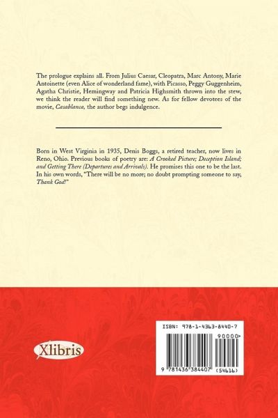 The prologue explains all. From Julius Ceasar, Cleopatra, Marc Antony, Marie Antoinette (even Alice of Wonderland fame), with Picasso, Peggy Guggenheim, Agatha Christie, Hemingway and Patricia Highsmith thrown into stew, we think the reader will find something new. As for fellow devotees of the movie, Casablanca, the author begs indulgence.