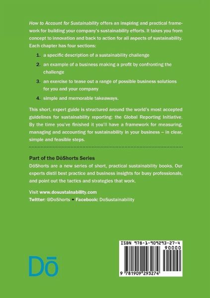 Learn how to measure, manage and account for sustainability in your business in clear, simple and feasible steps.This book takes you from concept to innovation and back to action items for all aspects of sustainability. Each chapter has four sections: (1) a specific description of sustainability challenges, (2) an example of a business making a profit by sustainability problem, (3) an exercise challenging the reader to identify business solutions and (4) clear, simple takeaways.The book is structured around the world's most accepted guidelines for sustainability reporting, the Global Reporting Initiative.