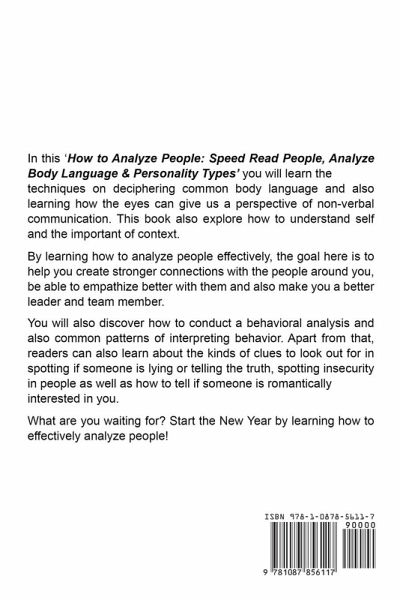 In this ‘How to Analyze People: Speed Read People, Analyze Body Language & Personality Types’ you will learn the techniques on deciphering common body language and also learning how the eyes can give us a perspective of non-verbal communication. This book also explore how to understand self and the important of context. By learning how to analyze people effectively, the goal here is to help you create stronger connections with the people around you, be able to empathize better with them and also make you a better leader and team member. You will also discover how to conduct a behavioral analysis and also common patterns of interpreting behavior. Apart from that, readers can also learn about the kinds of clues to look out for in spotting if someone is lying or telling the truth, spotting insecurity in people as well as how to tell if someone is romantically interested in you. What are you waiting for? Start the New Year by learning how to effectively analyze people!