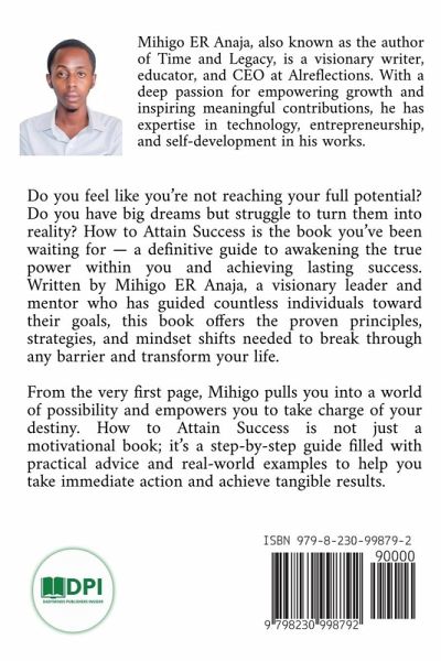 What does success mean to you, and how can you achieve it? In How to Attain Success: Time to Awaken the Giant Within You, Mihigo ER Anaja reveals the secrets to turning aspirations into reality through actionable strategies and a deep understanding of personal growth. Drawing on his own life journey, Mihigo reveals how overcoming challenges and embracing discipline can lead to extraordinary transformation. This book is more than just a guide-it's a companion for anyone ready to:Master time management to prioritize what truly matters and avoid distractions. Boost self-confidence and break free from the limiting beliefs holding you back. Navigate risks with wisdom, transforming setbacks into stepping stones for growth. Achieve academic and professional success with proven strategies for goal setting and sustained motivation. Find mental peace by cultivating resilience, positivity, and self-acceptance. With relatable stories, practical tools, and step-by-step guidance, Mihigo equips you to overcome doubts, build habits that drive progress, and unlock the giant within you. Whether you're a student seeking academic excellence, an entrepreneur pursuing your dreams, or someone aiming to live purposefully, this book will inspire and empower you to take control of your future. Packed with insights into self-improvement, goal-setting, and perseverance, How to Attain Success is perfect for readers who want to succeed not just in their careers, but in life. Your potential is limitless-this book shows you how to unleash it.