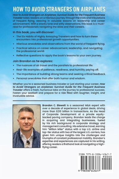 How to Avoid Strangers on Airplanes: Survival Guide for the Frequent Business Traveler takes readers on a hilarious journey through the trials and tribulations of frequent flying, weaving in valuable lessons on leadership and career advancement. With a snarky tone and witty observations, this book is a must-read for professionals navigating the skies and their careers.In this book, you will discover:The Six Habits of Highly Annoying Travelers and how to turn these encounters into professional growth opportunities. Hilarious anecdotes and observations from the world of frequent flying. Practical advice on career advancement, leadership, and navigating the professional world. Reflective questions to apply the book's lessons to your own journey. Join Brandon as he explores:The nuances of air travel and the parallels to professional life. Real-life examples of patience, readiness, and humility paying off. The importance of building strong teams and seeking critical feedback. Personal anecdotes that offer both humor and wisdom. Whether you're a seasoned business traveler or just starting your career, How to Avoid Strangers on Airplanes: Survival Guide for the Frequent Business Traveler offers a fresh, humorous take on the journey to professional success. Fasten your seatbelt and prepare for a ride filled with laughter, insight, and invaluable advice.