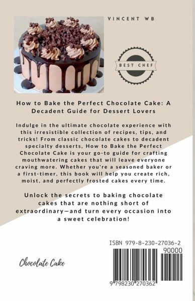 Do you dream of creating the perfect chocolate cake-rich, moist, and irresistibly decadent? Look no further! How to Bake the Perfect Chocolate Cake: A Decadent Guide for Dessert Lovers is your one-stop guide to mastering the art of chocolate indulgence. Packed with step-by-step instructions, expert tips, and mouthwatering recipes, this book takes you on a journey through the world of chocolate cakes. From timeless classics like Chocolate Fudge Cake to luxurious specialties like Torta Caprese and Lava Cake, there's a recipe for every occasion and every level of baker. Inside, you'll find:Creative frostings, ganaches, and fillings to elevate your cakes to bakery perfection. Tips for troubleshooting common baking mistakes, so every cake is a success. Bonus recipes for chocolate cupcakes, cake pops, and truffles to wow your friends and family. Healthy and alternative recipes for vegan, gluten-free, and sugar-free options. Inspiration for pairing chocolate cakes with beverages and decorating like a pro. Whether you're a beginner looking for easy wins or a seasoned baker ready to experiment with new techniques, this book will become your ultimate baking companion. Indulge your passion for chocolate, impress your loved ones, and transform every bite into a moment of bliss. Your perfect chocolate cake awaits-are you ready to bake it?