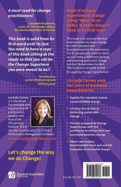 A book for managers who have tried to deliver business change but felt frustrated and disempowered by the experience, for people who want to stand up and make a difference igniting and inspiring successful change but donâ t know where to start. This is a complete toolkit for aspiring Change Superheroes!
