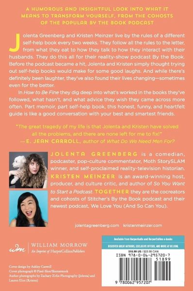 A humorous and insightful look into what advice works, what doesn't, and what it means to transform yourself, by the co-hosts of the popular By the Book podcast. In each episode of their podcast By the Book, Jolenta Greenberg and Kristen Meinzer take a deep dive into a different self-help book, following its specific instructions, rules, and advice to the letter. From diet and productivity to decorating to social interactions, they try it all, record themselves along the way, then share what they've learned with their devoted and growing audience of fans who tune in. In How to Be Fine, Jolenta and Kristen synthesize the lessons and insights they've learned and share their experiences with everyone. How to Be Fine is a thoughtful look at the books and practices that have worked, real talk on those that didn't, and a list of philosophies they want to see explored in-depth. The topics they cover include: Getting off your device Engaging in positive self-talk Downsizing Admitting you're a liar Meditation Going outside Getting in touch with your emotions Seeing a therapist Before they began their podcast, Jolenta wanted to believe the promises of self-help books, while Kristen was very much the skeptic. They embraced their differences of opinion, hoping they'd be good for laughs and downloads. But in the years since launching the By the Book, they've come to realize their show is about much more than humor. In fact, reading and following each book's advice has actually changed and improved their lives. Thanks to the show, Kristen penned the Amish romance novel she'd always joked about writing, traveled back to her past lives, and she broached some difficult conversations with her husband about their marriage. Jolenta finally memorized her husband's phone number, began tracking her finances, and fell in love with cutting clutter. Part memoir, part prescriptive handbook, this honest, funny, and heartfelt guide is like a warm soul-baring conversation with your closest and smartest friends.