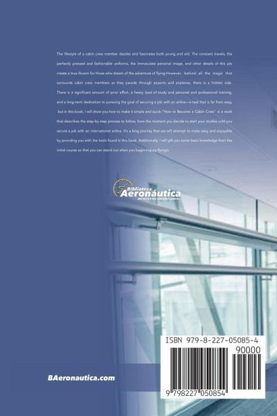 The lifestyle of a cabin crew member dazzles and fascinates both young and old. The constant travels, the perfectly pressed and fashionable uniforms, the immaculate personal image, and other details of this job create a true illusion for those who dream of the adventure of flying. However, behind all the magic that surrounds cabin crew members as they parade through airports and airplanes, there is a hidden side. There is a significant amount of prior effort, a heavy load of study and personal and professional training, and a long-term dedication to pursuing the goal of securing a job with an airline-a task that is far from easy, but in this book, I will show you how to make it simple and quick. "How to Become a Cabin Crew" is a work that describes the step-by-step process to follow, from the moment you decide to start your studies until you secure a job with an international airline. It's a long journey that we will attempt to make easy and enjoyable by providing you with the tools found in this book. Additionally, I will gift you some basic knowledge from the initial course so that you can stand out when you begin. Happy flying!