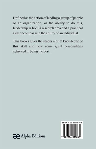 Defined as the action of leading a group of people or an organization, or the ability to do this, leadership is both a research area and a practical skill encompassing the ability of an individual. This books gives the reader a brief knowledge of this skill and how some great personalities achieved in being the best.