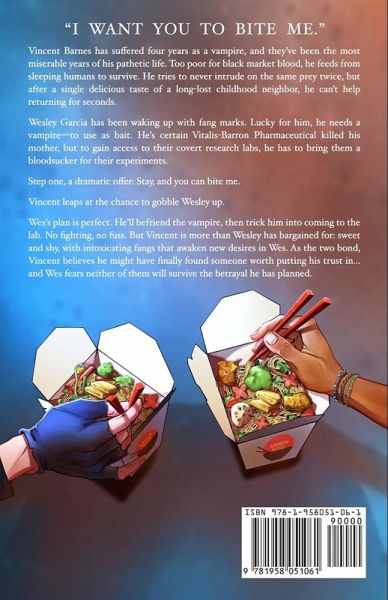 Vincent Barnes has suffered four years as a vampire, and they've been the most miserable years of his pathetic life. Too poor for black market blood, he feeds from sleeping humans to survive. He tries to never intrude on the same prey twice, but after a single delicious taste of a long-lost childhood neighbor, he can't help returning for seconds. Wesley Garcia has been waking up with fang marks. Lucky for him, he needs a vampire-to use as bait. He's certain Vitalis-Barron Pharmaceutical killed his mother, but to gain access to their covert research labs, he has to bring them a bloodsucker for their experiments. Step one, a dramatic offer: Stay, and you can bite me. Vincent leaps at the chance to gobble Wesley up. Wes's plan is perfect. He'll befriend the vampire, then trick him into coming to the lab. No fighting, no fuss. But Vincent is more than Wesley has bargained for: sweet and shy, with intoxicating fangs that awaken new desires in Wes. As the two bond, Vincent believes he might have finally found someone worth putting his trust in... and Wes fears neither of them will survive the betrayal he has planned. ¿How to Bite Your Neighbor and Win and Wager is a slow-burn paranormal mm romance full of laughter, angst, and thirsty pining. It is perfect for fans of fangs and scientific interpretations of vampirism, with a medium spice level that heats up further in the free bonus short story. Content includes bite kink, bleeding (non-kinky), medical experimentation (not experienced by the point of view characters), and the use of "bodice-ripping" as a verb.