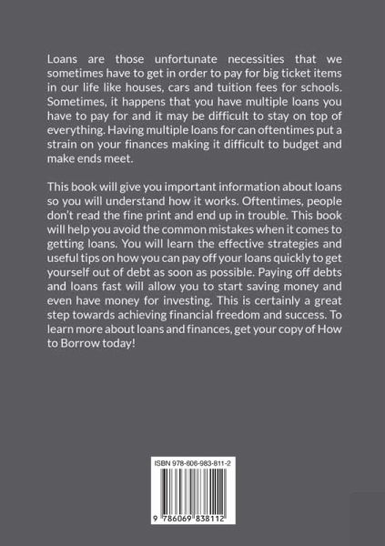 How to Borrow: The Comprehensive Guide on Finances and Loans, Learn Everything You Need to Know about Student Loans and Loan Consolidations to Finally Get Out of Debt Loans are those unfortunate necessities that we sometimes have to get in order to pay for big-ticket items in our life like houses, cars, and tuition fees for schools. Sometimes, it happens that you have multiple loans you have to pay for and it may be difficult to stay on top of everything. Having multiple loans can oftentimes put a strain on your finances making it difficult to budget and make ends meet. This book will give you important information about loans so you will understand how it works. Oftentimes, people don't read the fine print and end up in trouble. This book will help you avoid common mistakes when it comes to getting loans. You will learn effective strategies and useful tips on how you can pay off your loans quickly to get yourself out of debt as soon as possible, This book will discuss the following: Loan Basics Business Loans Using Collateral Loans for Business Home Equity Loans For Business The Importance Of Managing Loans Student Loan Pitfalls Student Loan Consolidation Paying off debts and loans fast will allow you to start saving money and even have money for investing. This is certainly a great step towards achieving financial freedom and success. To learn more about loans and finances, scroll up and click "add to cart" now.
