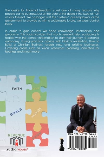 In an age where information is a commodity and financial freedom a much sought after desire, this book provides both to a subset of society. Targeted at but not exclusively towards the Christian Community it fuses biblical scriptures and principles with the practical requirements needed to build a business. Giving the reader the essential tools to build a God pleasing and sustainable business in a tough economic climate. The desire for financial freedom is just one of many reasons why people start a business, but at the core of this desire is trust or lack of. We no longer trust the system, our employers or the government to provide for us, or our future, we want control back. In order to gain control we need knowledge, information and guidance. This book provides that much needed help, providing its reader with the correct information to start their journey to personal autonomy. Covering areas such as vision, planning, dominating the market, and using their Faith for progression. It fuses practical advice and tips with biblical revelations accompanied by God's scriptures.